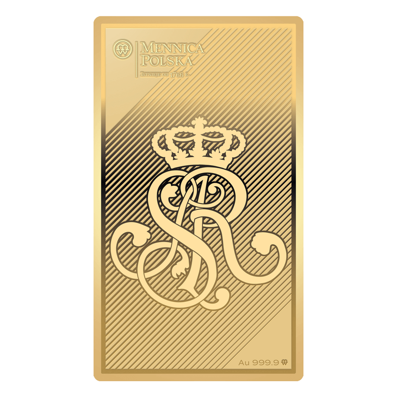 Kolekcjonerska sztabka okolicznościowa wybita w Mennicy Polskiej w złocie najwyższej próby 999,9 i masie 1/10 uncji.